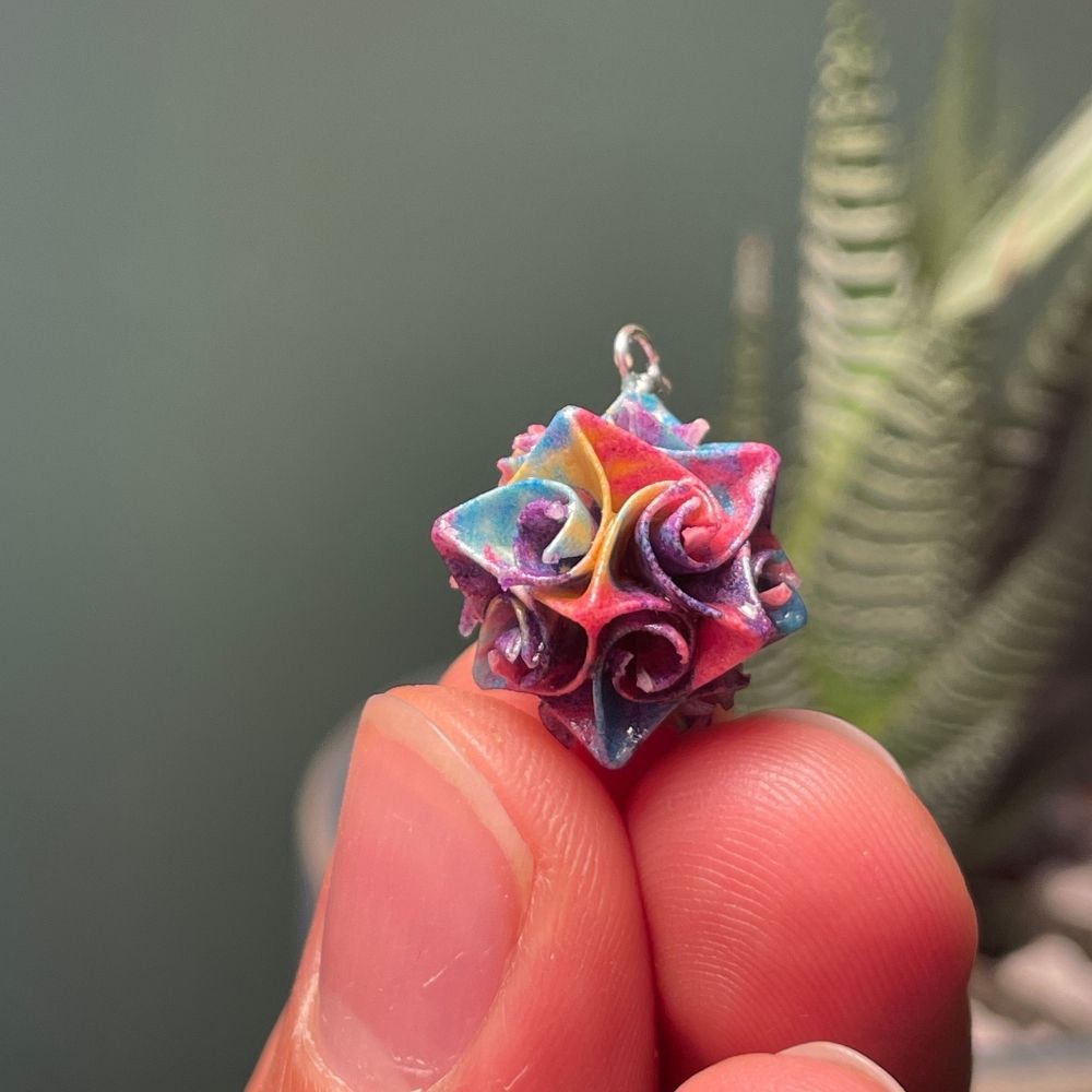 Los aretes colgantes Kusudama en origami, elaborados artesanalmente por IMAGIRO en Bogotá, son una pieza que rescata la tradición del origami japonés y la transforma en joyerÃa artesanal contemporánea. El Kusudama, un modelo clásico del origami, simboliza armonÃa, unión y belleza geométrica.