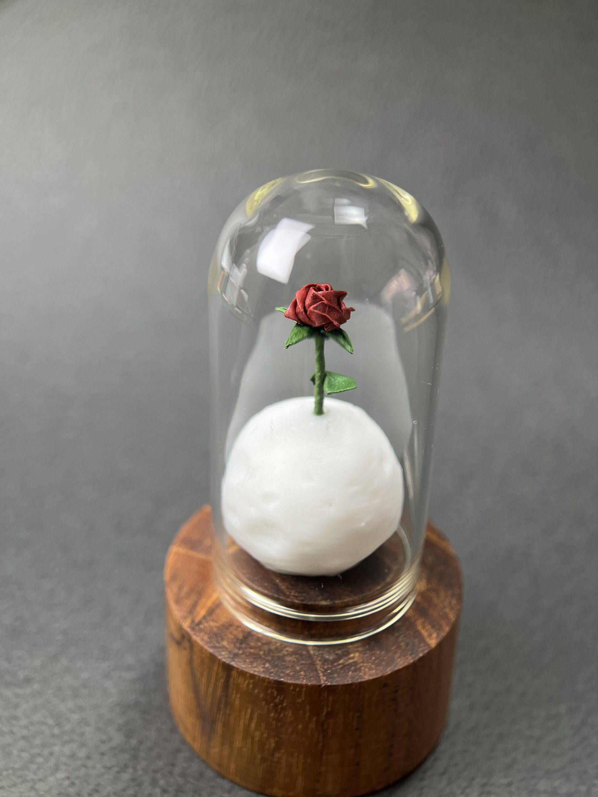 Diseño Único: Rosa de origami plegada con papel de alta calidad, situada sobre una luna translúcida que emite una luz suave y acogedora.